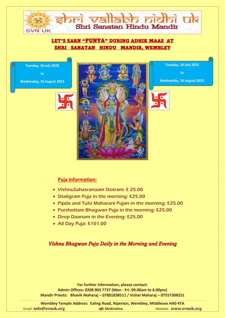 Purshottam Mas Pujas 2023